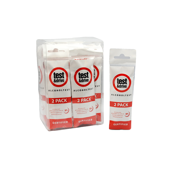 Test & Drive single-use disposable breathalyser kits for the detection of alcohol on a person's breath.